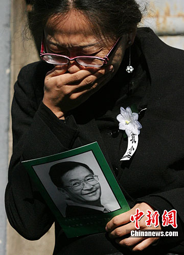 11月2日,民间环保组织“自然之友”志愿者在梁从诫先生告别仪式上失声痛哭。中新社记者 苏丹 摄