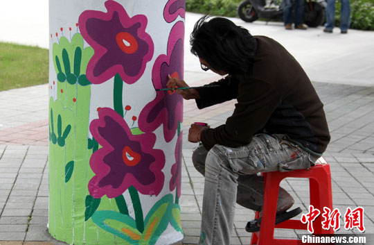 组图:台北花博开幕在即工作人员做最后整饰(2)