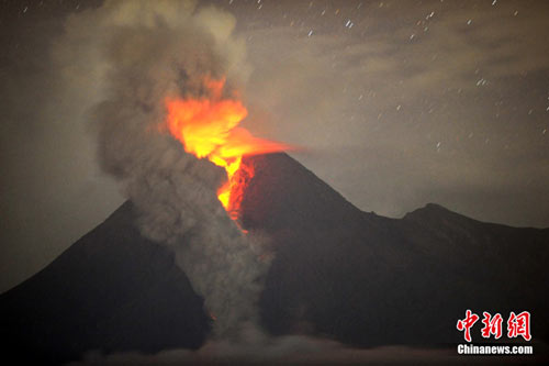 11月3日,位于印度尼西亚中爪哇省的默拉皮火山发生自10月26日以来的最大规模喷发,炽热的烟灰高达数千米,浓烟漂浮了15公里。