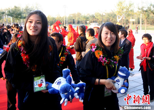 11月4日,上海世博会“中国元素”运营团队载誉回京。中新社发 杜洋 摄