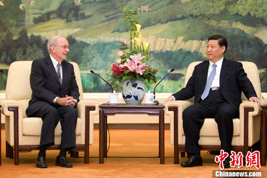 11月4日,中国国家副主席习近平在北京人民大会堂,会见出席亚太地区儿童权利国际合作高级别会议的联合国儿童基金会执行主任莱克一行。