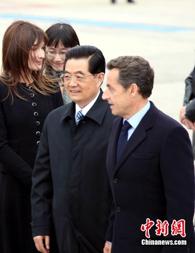 胡锦涛抵达巴黎 萨科齐夫妇破例到机场迎接(2)