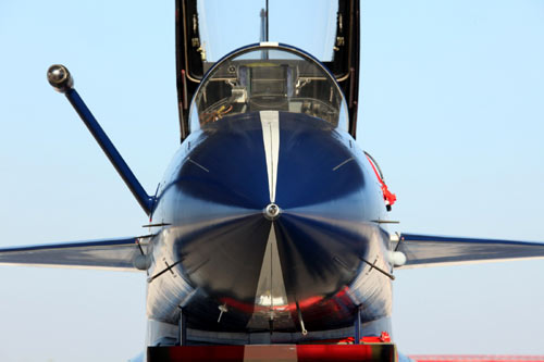 11月初,中国空军八一飞行表演队新涂装的歼10飞机。空军八一飞行表演队7架歼—10战机近日将飞赴珠海,参加11月16日至21日举行的第8届中国国际航空航天博览会(珠海航展)。这是表演队换装歼—10战机后,首次以新涂装向世人正式亮相。空军还将派出歼—8F、歼轰—7A、轰—6H、空警—200、直—8KA、直—9WA等7型飞机,参加这次国际性综合航展。中新社发 谭超 摄