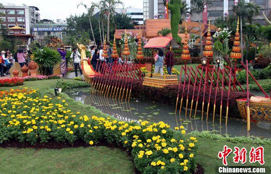 台北花博会11月6日开园,泰国园艺机构设计布置的庭园作品吸引了不少参观者。中新社发 王健 摄