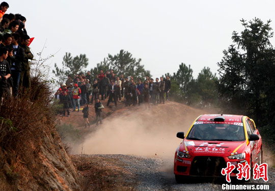 2010年FIA亚太汽车拉力锦标赛11月5日在浙江龙游拉开帷幕,在超级短道赛的比赛中,红云红河拉力车队的徐俊领跑中国车手。中新社发 赵振清 摄