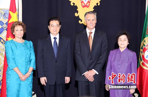 当地时间11月6日下午,中国国家主席胡锦涛在里斯本同葡萄牙总统席尔瓦会谈。会谈前,胡锦涛和夫人刘永清礼节性会见席尔瓦夫妇。 作 者:张朔