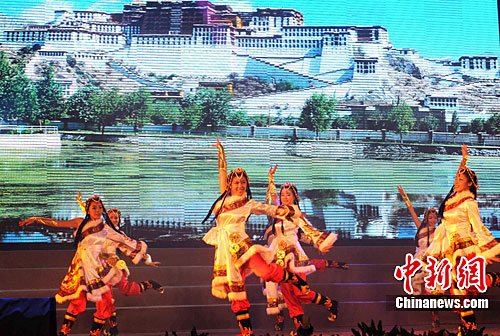 图为晚会第三篇章——《硕果满枝头》中民舞组合表演《吉祥》。中新社发 张勤 摄