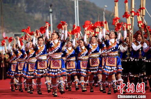 11月7日,2010中国柳州·融水苗族芦笙斗马节芦笙表演比赛在广西融水县体育公园举行,19支芦笙队伍近千名队员参赛,悦耳的芦笙齐鸣吸引了众多观众观看。