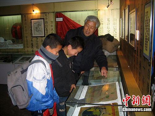 中新网11月8日电(裴怡 张恩)山西省检察院退休干部王艾甫筹集十万余元人民币创办《辽县人民抗战纪实》收藏馆。展室设“国耻警示篇”、“抗战理论篇”、“根据地创建篇”、“民主法制篇”、“抗战文化篇”、“国际友谊篇”、“参军参战篇”、“鱼水深情篇”、“抗战武器篇”、“英烈永垂篇”等11个专题。展品均为王艾甫近50年的收藏。展室内除了土枪,地雷,大刀,红缨枪及日用品等实物外,还有大量的文献资料和图片,包括当年辽县易名为左权县的珍贵文献、西河头民兵自卫团抗日武装花名册,辽县人民为建设烈士纪念塔捐款捐物的账目等。