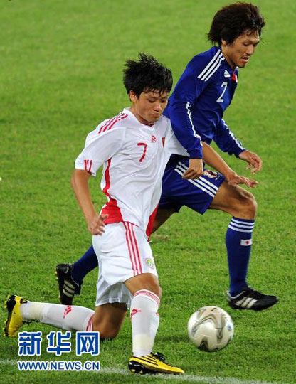 图:亚运会男足比赛 中国队对阵日本队(4)