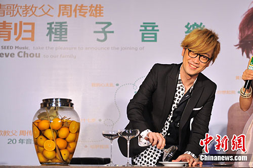 11月11日,“情歌教父”周传雄在北京与种子音乐举行了隆重而极具创意的签约仪式。现场,周传雄不仅用自己独家秘方调制的“love song”美酒招待各位媒体,还意外首次公开演唱了最新力作《苦情歌》。小刚老师音乐道路上的 “黄金搭档”兼种子音乐集团副总经理陈信荣先生也亲自到场,为小刚送上精美船舵道具,突显两人的好情谊之余,更有共掌音乐方向的好意头。