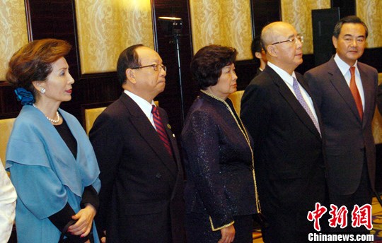 11月11日晚,中共中央台办与广州亚运会组委会、广东省委、广州市委在广州共同举办招待酒会,欢迎前来出席广州亚运开幕式的台湾各界嘉宾。中台办主任王毅、中国国民党荣誉党主席吴伯雄、副主席蒋孝严等出席了招待酒会。中新社记者 罗仰明 摄