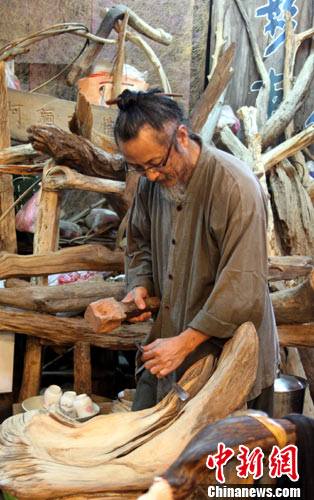 在台北县的泰雅族传统集居地乌来山区,路旁有一间颇为别致的《舞木——原木戏场》工作室。常年在此“修行”的木雕艺术家张光伯,走遍岛内搜寻天然木材,乃至山上的杂木和漂流木,依照木头的原始纹路与样貌设计作品,而不刻意雕琢装饰,令其作品各具表情,浑然天成。