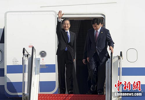 11月13日上午,国务院总理温家宝抵达澳门机场。温家宝总理当日上午将出席在澳门举办的中国——葡语国家经贸合作论坛(澳门)第三届部长级会议开幕式。中新社记者 廖攀 摄