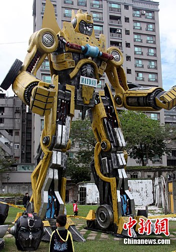 一个约6层楼高、重达5吨的硕大变形金刚,近日亮相台北繁华老街西门町一带街头。这是台北市文化局为呼应台北花博,而实施将大型装置艺术导入老社区的尝试。中新社记者 王健 摄