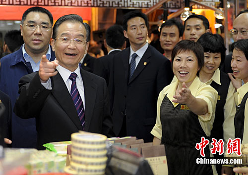 11月14日,国务院总理温家宝来到澳门官也街一家手信店了解市场景气。中新社记者 廖攀 摄