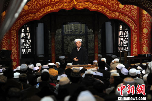 图为当日,北京穆斯林信众在北京地区规模最大的牛街礼拜寺。中新社记者 刘震 摄