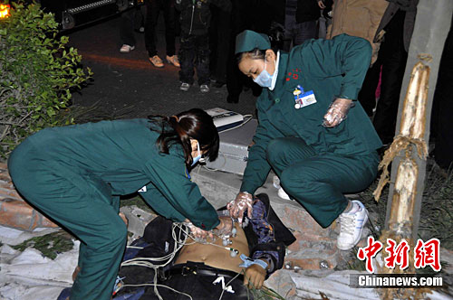 图为医护人员正在现场抢救伤者。中新社发 洋晨 摄