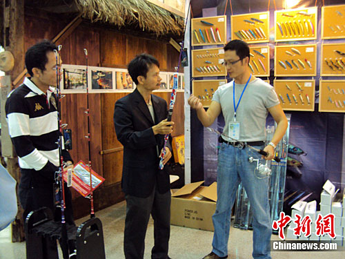11月19日,2010中国(海南)国际海洋产业博览会在海口市举行。博览会上展览了各类水产冻品、活品、养殖设备、渔船机械设备、航海仪器、休闲渔具等。张茜翼 摄
