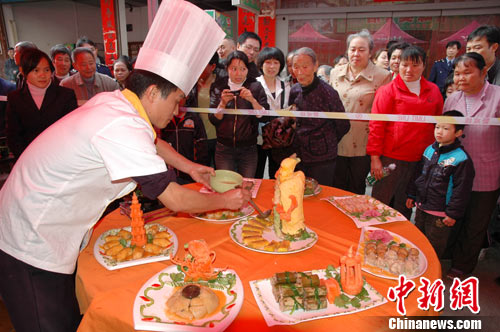 11月19日广西平乐桂江文化旅游节暨第二届柚子节上,举办了特色菜肴“十八酿”酿王争霸赛,吸引大批当地民众。在平乐的美食中,最负盛名的是“十八酿”,即十八种酿菜。所谓“酿菜”,是当地一种特色吃法:把各种调料加入到肉馅里,然后填入不同蔬菜或壳类做成的“外衣”中,或蒸,或焖,熟而成“酿”。中新社发 唐梦宪 摄