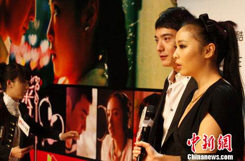 11月19日,网络剧《爱上男主播》在北京召开首映新闻发布会,宣布首个跨平台联合出品的精品网络自制剧《爱上男主播》,将在三大主流视频媒体同步上线。男女主角分别由北京电影学院06级表演本科班的王亦凡、高叶出演。中新社记者 钱兴强 摄