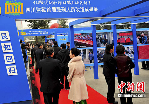 11月25日上午,四川监狱首届服刑人员改造成果展在四川省科技馆开幕,首次向公众展示了四川省近年来对罪犯的改造工作成果。中新社发 安源 摄