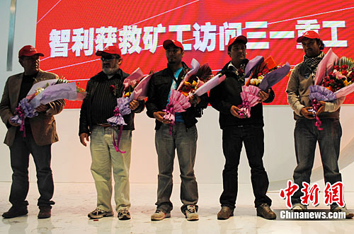 11月25日,在上海举行的“亚洲工程机械第一展”迎来了一批特殊的客人——33名智利获救矿工中的5名代表。 智利矿难的救援计划曾选定由中国三一集团设计生产的SCC4000型履带起重机承担起吊救援舱的重任。尽管最终未能使用这台设备起吊,但中国设备中标,并在现场随时待命,表现了当地政府和国际社会对中国设备的性能、质量和后勤保障的认可。5名矿工此番访华旨在感谢中国人民和中国设备。