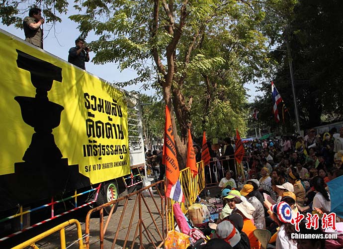 黄衫军连续三天在泰国会前集会示威