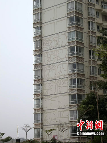 图:南宁一新建楼盘外墙出现大片裂痕(2)