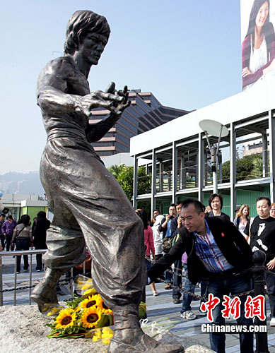 11月27日,是国际武打巨星李小龙70冥寿,香港不少李小龙迷自发进行各式各样悼念活动。当天上午,香港李小龙会一批会员到星光大道李小龙铜像前献花。