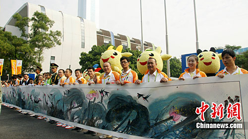 图:16米水墨荷花长卷为亚运会胜利闭幕添彩(2)