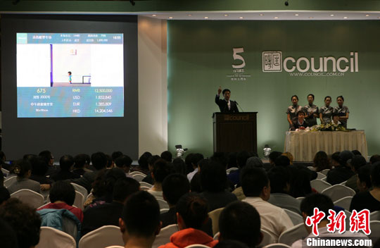 12月5日,匡时2010年秋拍油画雕塑专场开拍。刘野的油画《中午的蒙德里安》1400万元成交。这幅画是刘野蒙德里安系列中最重要和知名的作品。图为拍卖现场。中新社记者 苏丹 摄