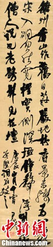 图为王铎名迹《雒州香山作诗轴》。中新社记者 苏丹 摄