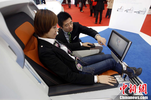 12月6日,第十届中国国际现代化铁路技术装备展览会在北京举行,其中一款全球领先的高速列车贵宾座椅受到与会人士的关注。该座椅由上海延锋江森自主研发,包括“坐、躺、卧”三个功能,同时配有智能多媒体触摸屏、LED节能阅读灯、电源插座、USB和网线接口等,满足了中国高铁市场的多样需求。