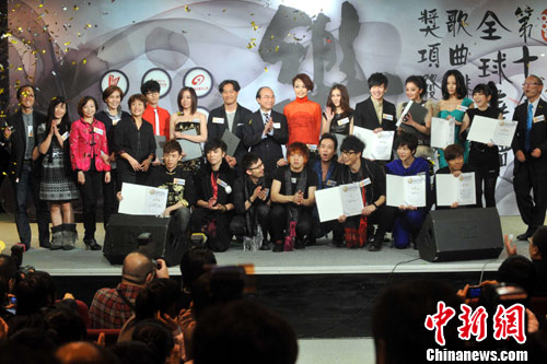 12月6日,来自中国内地、香港、新加坡及马来西亚等多个国家地区的歌手,出席在香港举行第十届“全球华语歌曲排行榜”颁奖典礼发布会。