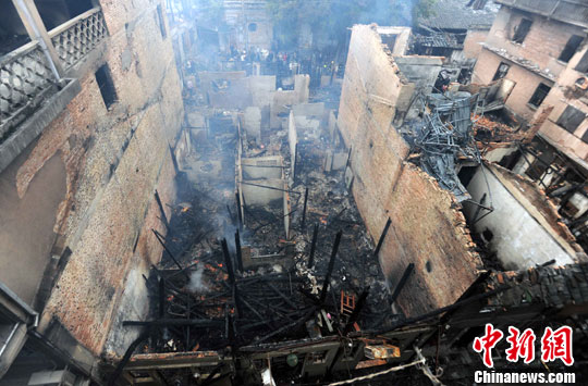 图为火灾现场满目疮痍。 中新社记者 刘可耕 摄