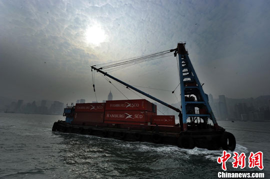 12月7日,香港风云突变前,烟霞弥漫在维多利亚港。香港天文台预测,当晚香港气温将骤降至15摄氏度。中新社记者 郑祚声 摄
