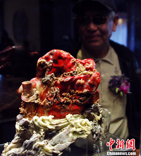 12月8日,一快色泽鲜艳、堪称石中极品的昌化鸡血石,在福州举行的第十届中国民间文艺“山花奖”评选活动上极为抢眼。当日,第十届中国民间文艺“山花奖”评选活动在福州举办,寿山石、青田石、昌化石、巴林石等中国四大名石作品竟逐“山花奖”。中国民间文艺“山花奖”是国家级民间文艺大奖,与电影“百花奖”、电视“金鹰奖”、戏曲“梅花奖”等同属于中国文艺界最高奖项。