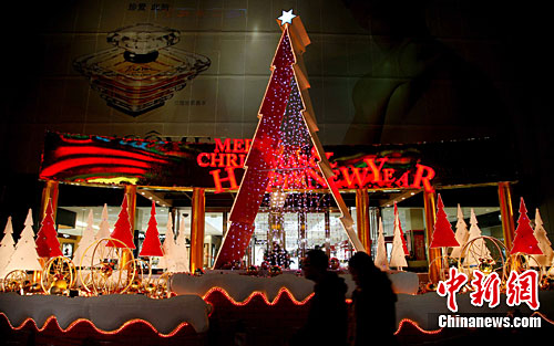 随着圣诞节的临近,云南昆明各商家纷纷开始装点店面营造圣诞氛围。