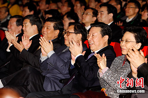全国人大常委会副委员长华建敏、全国人大常委会副委员长严隽琪、全国政协副主席孙家正及中国文联有关领导出席晚会。王保胜 摄