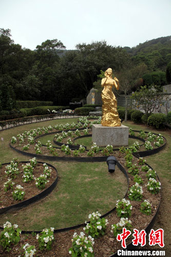 台北金宝山邓丽君墓园“筠园”的金色雕塑