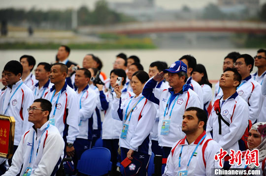 10日下午,广州亚运城升旗广场,中华台北代表团举行升旗仪式。中新社记者 柯小军 摄