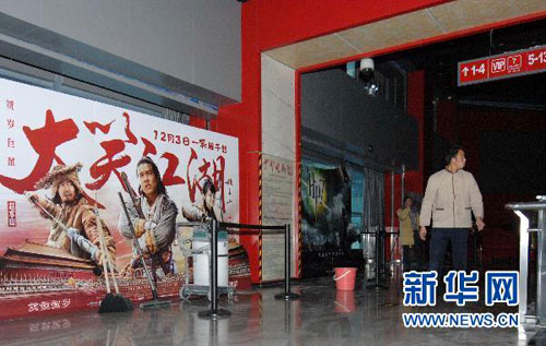 12月11日16时30分许,北京西单大悦城十层首都电影院内,保洁人员已清理完地上的水渍。张宇摄