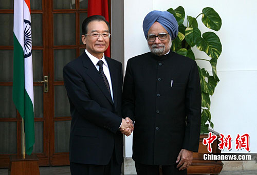 12月16日,中国总理温家宝在新德里与印度总理辛格举行会谈。中新社记者 周兆军 摄