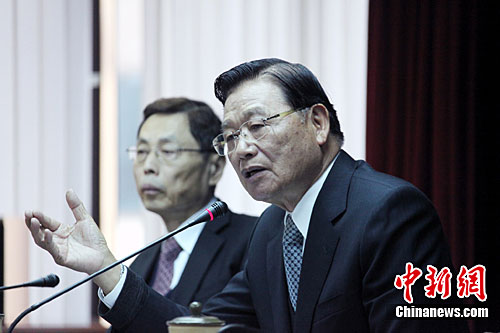 12月17日,海峡交流基金会在台北就两岸两会第六次会谈举行会前记者会。海基会董事长江丙坤介绍了此次会谈的相关安排。中新社记者 黄少华 摄
