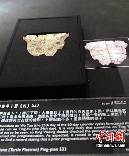 这是陈列馆展品中的殷墟甲骨卜辞。中新社记者 关向东 摄