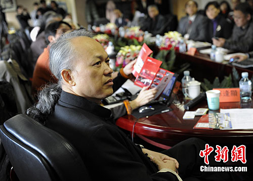 图为台湾毫芒雕塑馆馆长著名微雕家陈逢显在研讨会上。中新社记者 刘震 摄