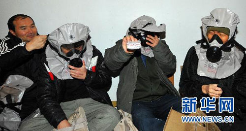 韩国决定20日在延坪岛举行射击演习 12月20日,延坪岛的居民在庇护所戴防毒面具。韩国军方20日决定当天在延坪岛附近海域举行实弹射击训练。演习将在“北方界线”以南的韩方海域进行。目前,岛上除军队外,还有居民、记者、公职人员等280多人。军方已经通过广播向当地民众下达了紧急躲避令。