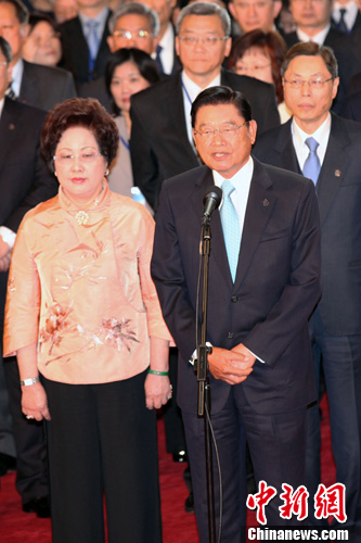 图为江丙坤在致欢迎辞。他表示,两岸经过协商,建立了更坚实的互信基础。中新社记者 黄少华 摄