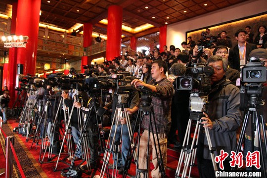 20日,来自国际、大陆、台、港、澳的五百多名记者在台北圆山饭店采访两岸两会第六次会谈。